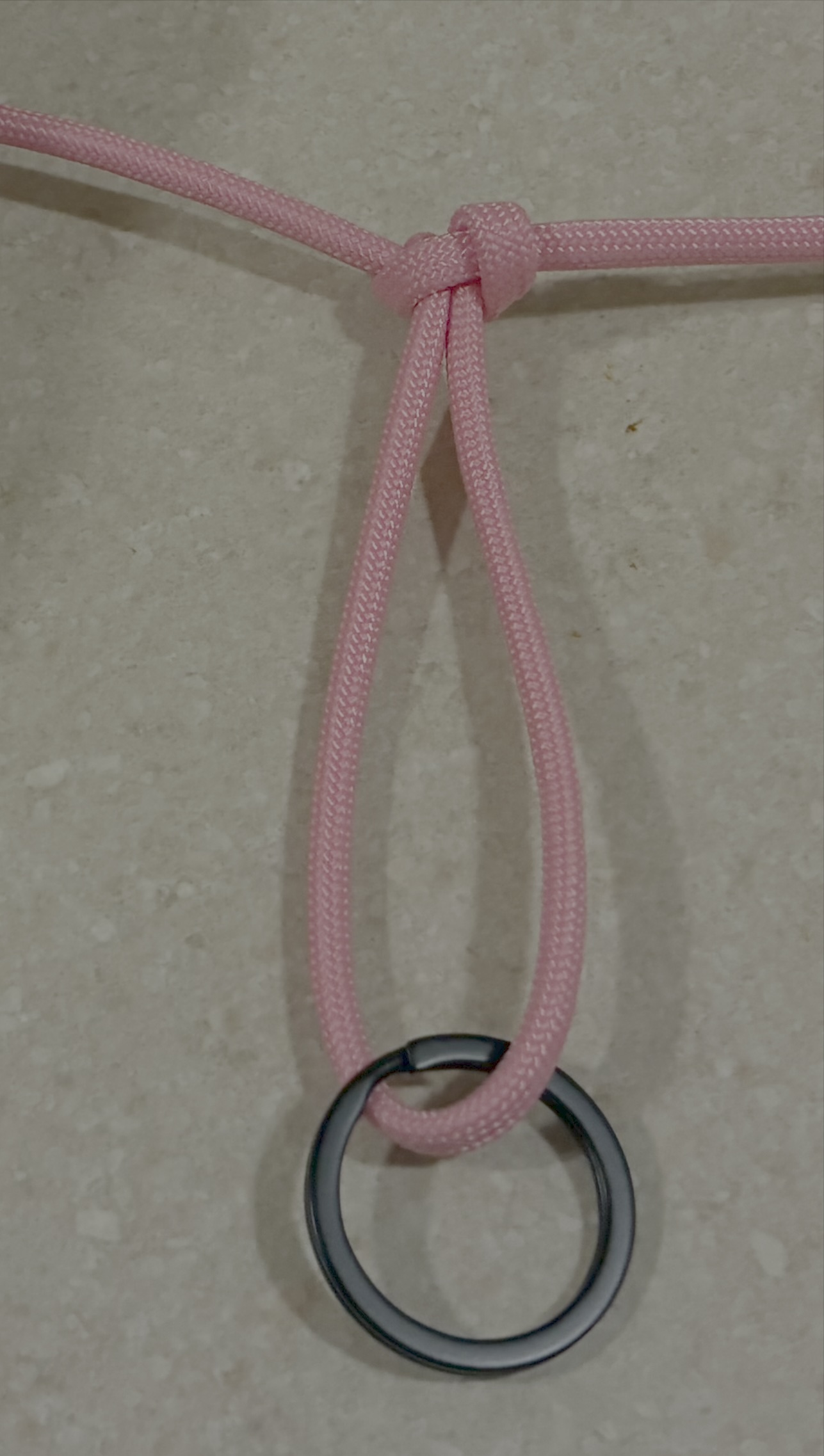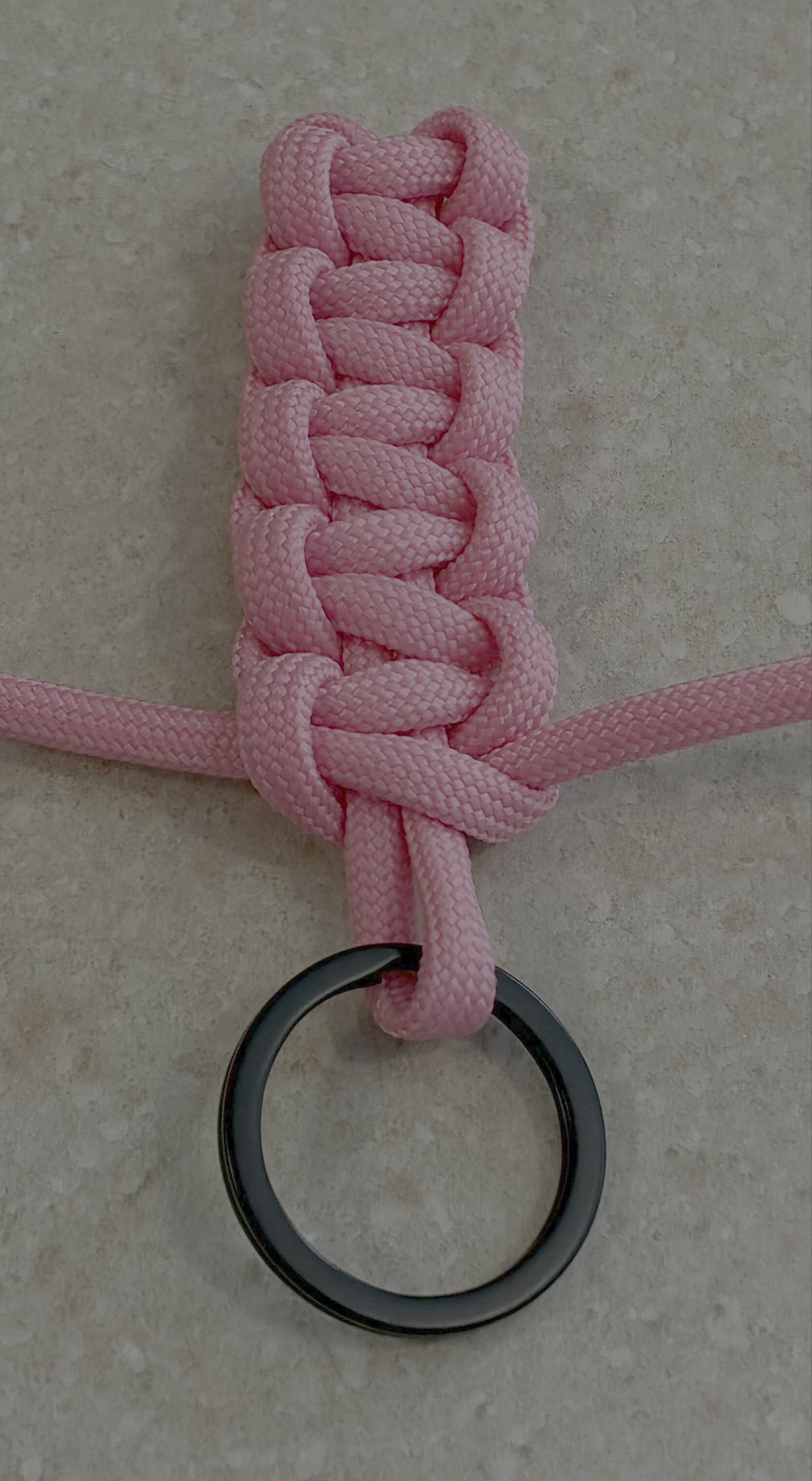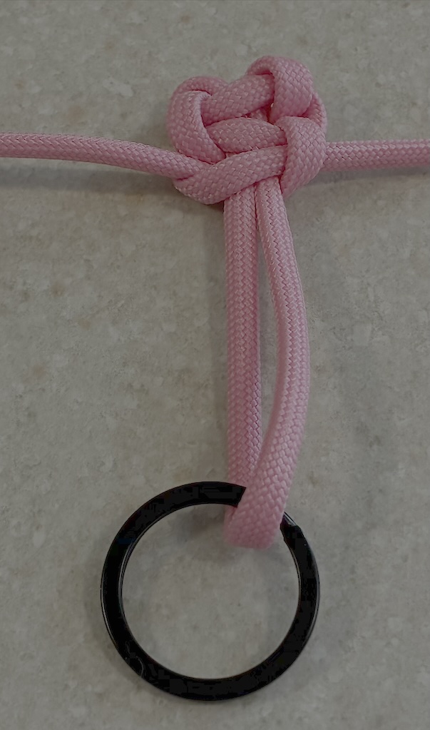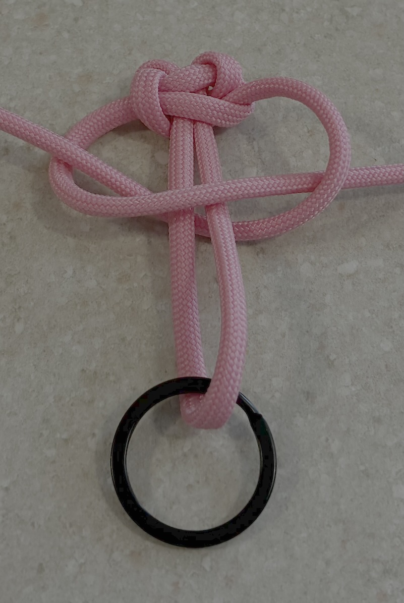 Start with a single cord 4 feet long, with a keyring in the middle of your paracord.