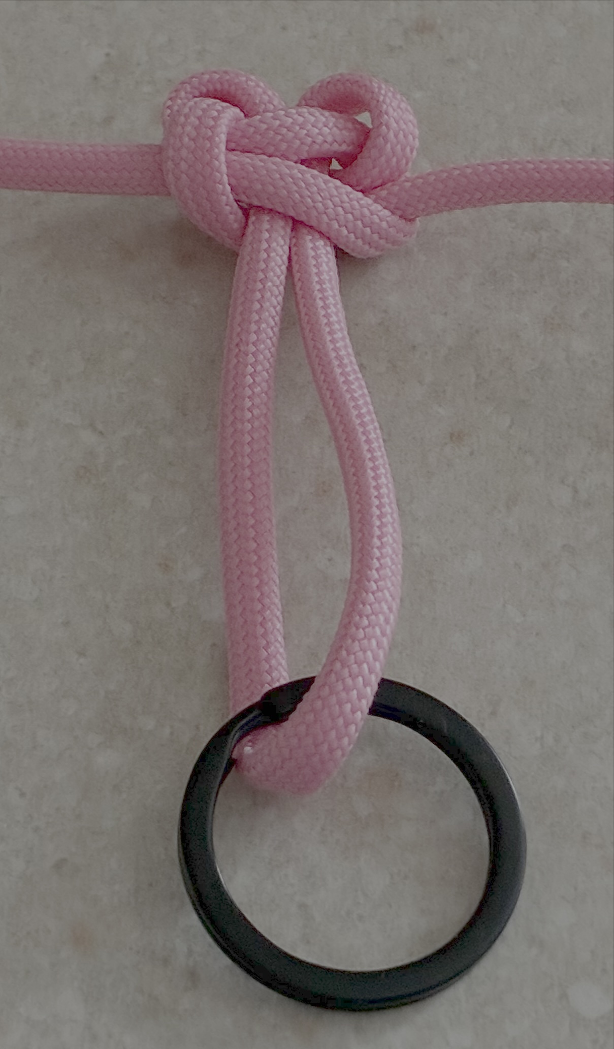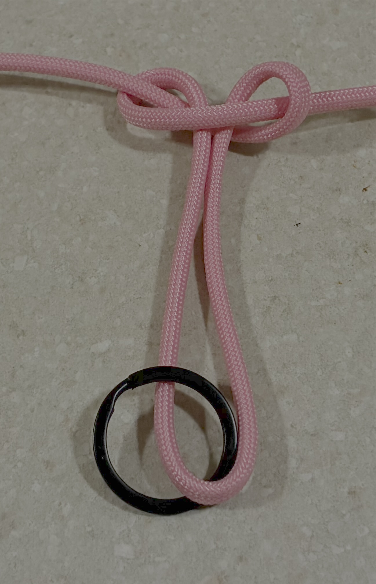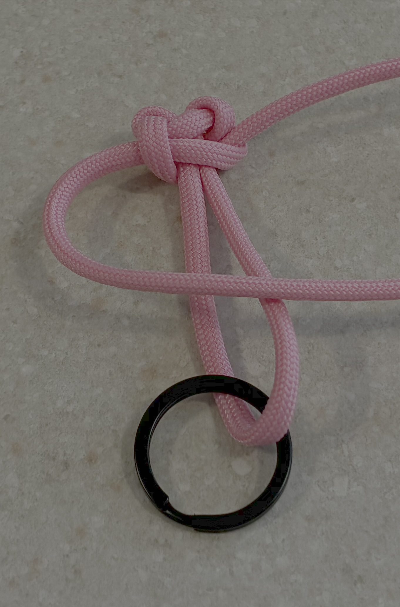 Start with a single cord 4 feet long, with a keyring in the middle of your paracord.