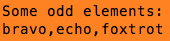 print "\nSome odd elements:\n"; print "$foo[0],$foo[2],$foo[4]\n";